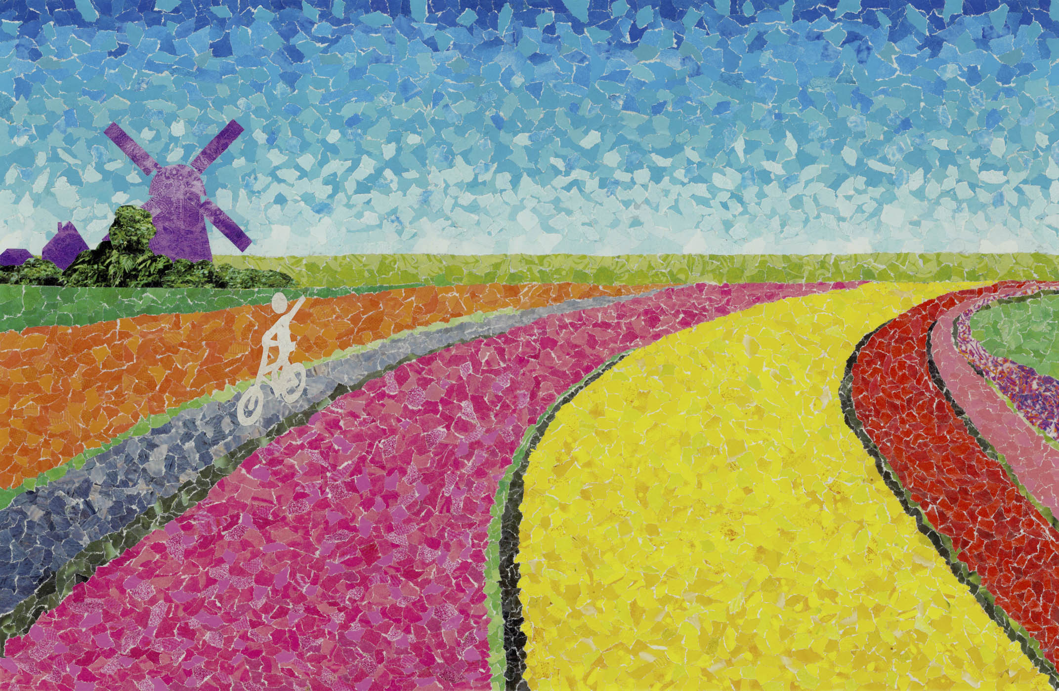 ‘Schilderen met papier’ noem ik het creëren van een werk met papiersnippers uit tijdschriften. Ik ontdekte hoe ik met snippers meer nuance in kleur kon aanbrengen, zoals schilders dat doen met hun kwast. Op deze manier ontstaat een beeld dat bijna impressionistisch aandoet.